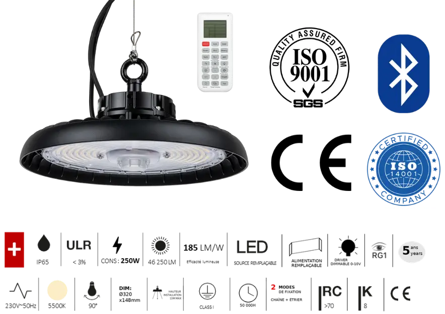 Étude d’éclairement, UGR maîtrisé, température de couleur adaptée selon l’usage.
